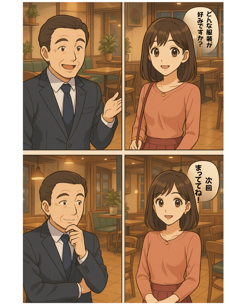 初めてのパパ活、服装で迷っていませんか?実は「清楚で上品、でもちょっと華やか」が男性に一番好印象なんです。この記事では、40代男性が思わず「また会いたい」と感じる女性の服装ポイントをわかりやすく解説します。